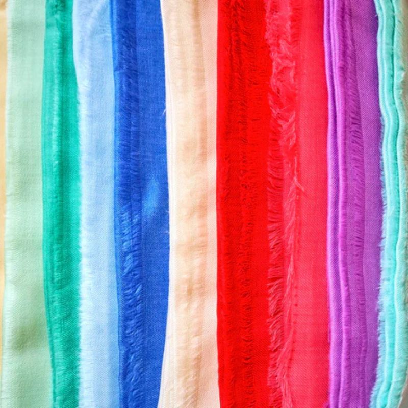 Estos chales están hechos y teñidos a mano por una pequeña empresa familiar de la India. No proceden de una gran fábrica. Por lo tanto, tenga en cuenta que puede haber pequeños defectos en el tejido. Este es el carácter de estos chales de pura lana de pequeña producción.