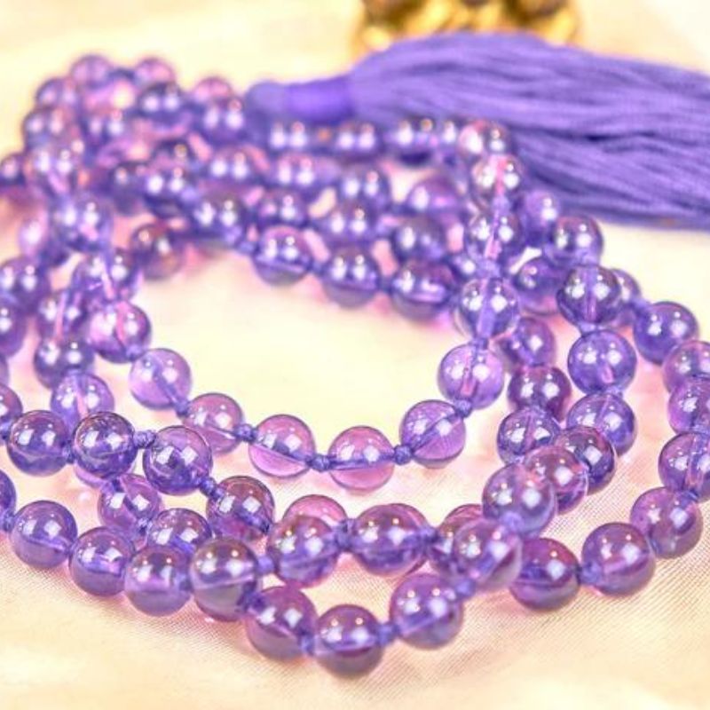 Todos los malas están hechos a mano en la India con piedras preciosas auténticas o cuentas naturales de primera calidad. Todos los malas se fabrican con esmero y cuidado para que sean duraderos y resistentes a la práctica diaria del japa.